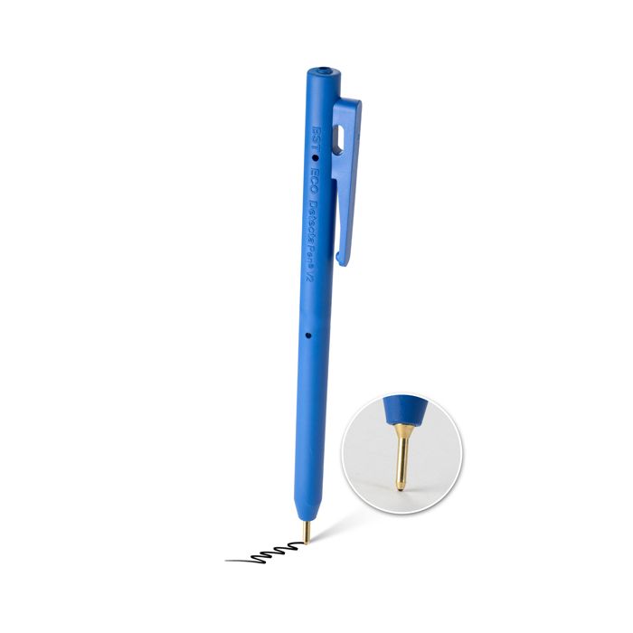 The beautifully simple design of the Detecta-Eco Pen is comprised of only two main components, the pen body and the ink cartridge, both of which are fully detectable. The unique hexagonal design of the pen body minimises the risk of the pen rolling and potentially falling off work surfaces.